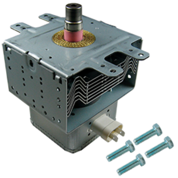 Warning: The magnetron uses high voltage, high current DC power to generate the microwave frequency that cooks the food. If the magnetron burns out, the microwave won’t heat. The magnetron is not repairable—if the magnetron is burned out, you must replace it. (Warning: The microwave oven can store a lethal amount of electricity in its high voltage capacitor, even after the microwave oven has been unplugged. Due to the high running voltage and the potential for electric shock, it is extremely dangerous to replace the electronic components in a microwave. Only a licensed technician should replace the magnetron.)