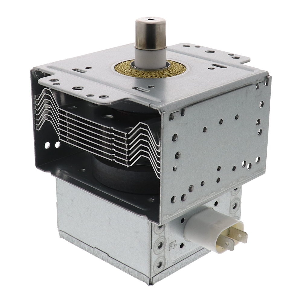The magnetron uses high voltage, high current DC power to generate the microwave frequency that cooks the food. If the magnetron burns out, the microwave won’t heat. The magnetron is not repairable—if the magnetron is burned out, you must replace it. (Warning: The microwave oven can store a lethal amount of electricity in its high voltage capacitor, even after the microwave oven has been unplugged. Due to the high running voltage and the potential for electric shock, it is extremely dangerous to replace the electronic components in a microwave. Only a licensed technician should replace the magnetron.)