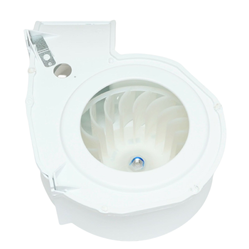 Description This Blower Housing Assembly is a replacement part for specific Frigidaire dryer models. It houses the blower wheel, which circulates air through the dryer drum and out the exhaust. This assembly ensures that hot air is efficiently directed through the dryer to dry clothes properly. Common Cause is the blower housing assembly can become damaged or worn out, affecting the dryer's performance. Causes of a bad blower housing assembly can include accumulation of lint or debris, wear and tear from frequent use, or physical damage to the housing or blower wheel.