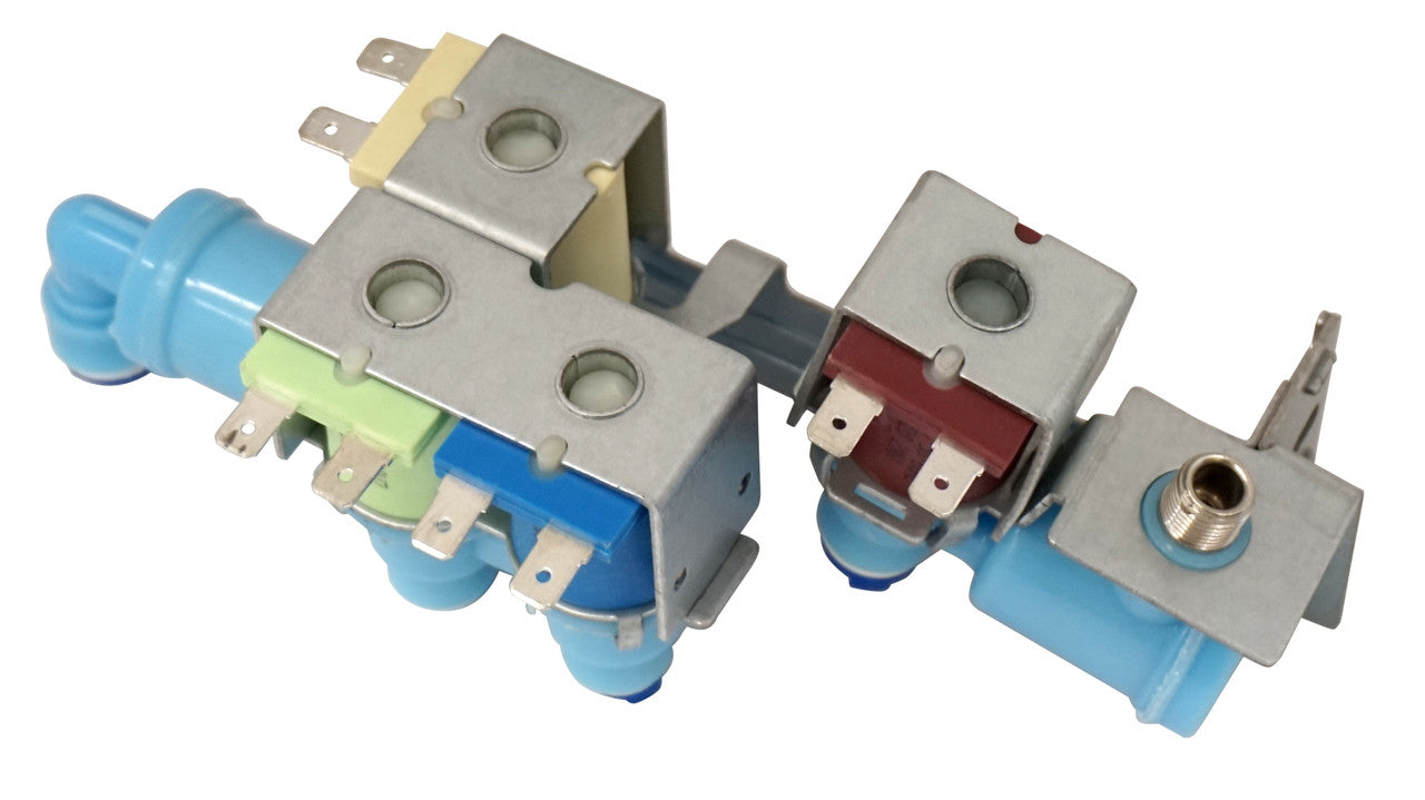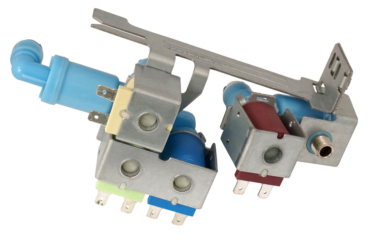 Description: This Water Inlet Valve is a replacement part for specific Frigidaire refrigerator models. It is designed to manage the flow of water to the ice maker and water dispenser. This solenoid-operated valve responds to commands from the refrigerator's electronic control, opening to allow water in and closing to stop the flow, ensuring proper operation of both ice production and water dispensing functions.