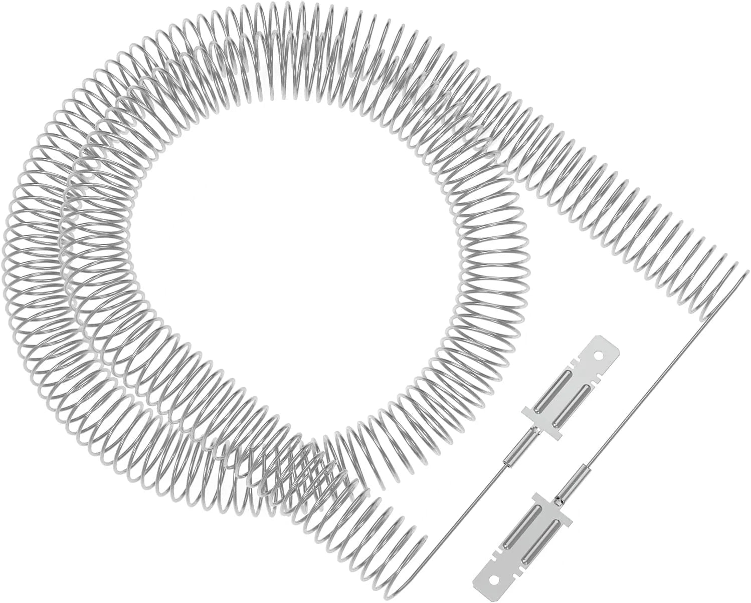 Description: This Electric Dryer Heating Element is a replacement part for specific Frigidaire dryer models. Located within the dryer drum cavity, this component produces the necessary hot air to evaporate moisture from wet laundry. Terminal Size: 5/16 inch. This electric dryer heating element restring coil does not include the heater housing insulators.