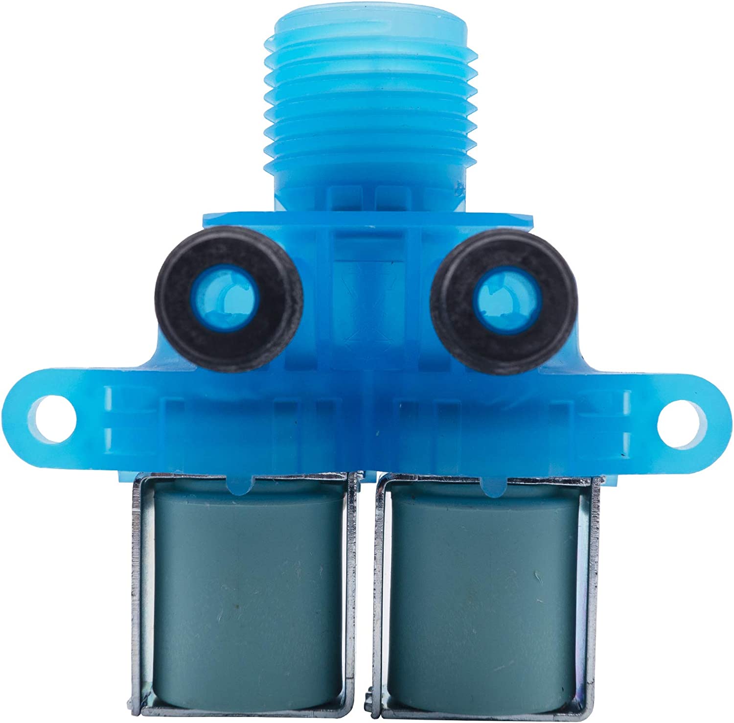 Description: This Water Inlet Valve set is a replacement part for specific Kenmore, Maytag, Whirlpool washing machine models. It controls the flow of water into the washer tub at designated stages in the washing process. Water enters through the valve inlet and is distributed to internal components like the detergent dispenser, water pipes, and sump hoses. Common causes of a bad valve can include mineral scale buildup inhibiting proper flow regulation over time, or cracks and leaks from wear and tear on rubber gaskets and seals.