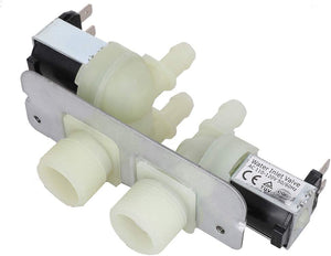 Description: This 2 in 3 Out Water Valve is a replacement part for select GE washing machine models. It is located within the water supply system to help regulate water flow into the washer tub. Common causes of failure can include obstruction or clogging from mineral deposits over time. Valve components may also wear out with extended usage.
