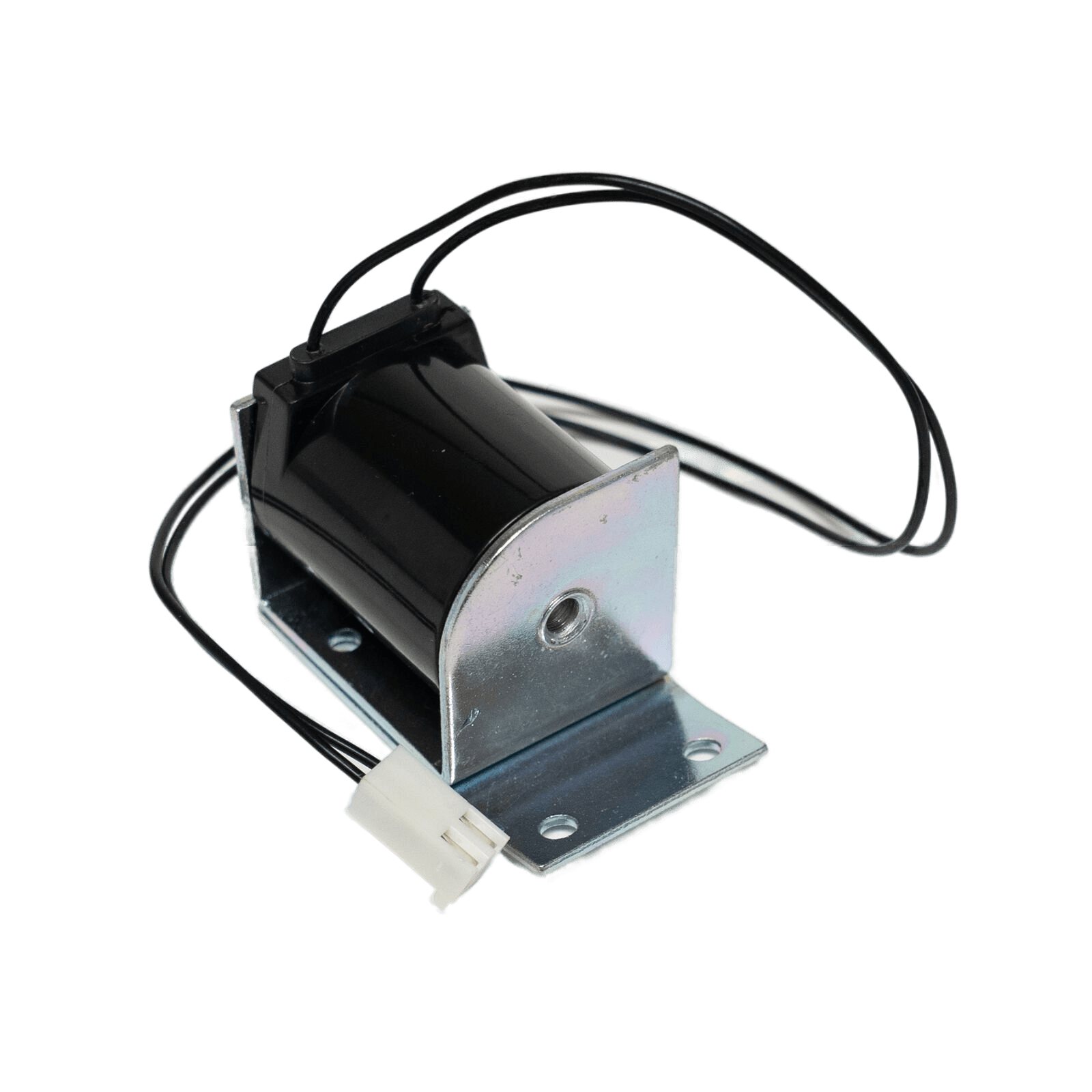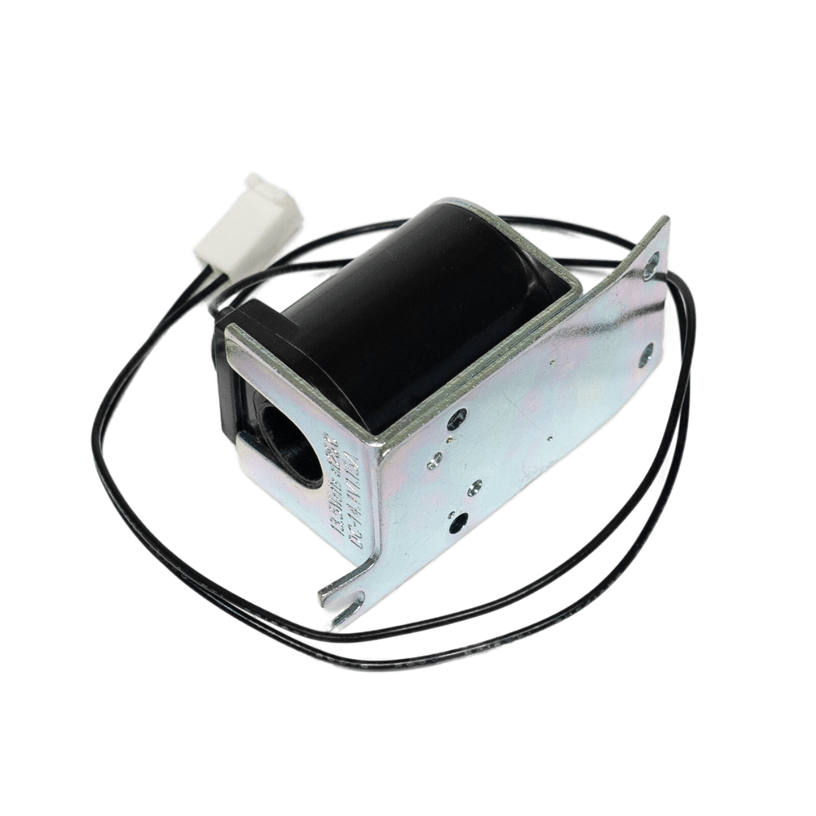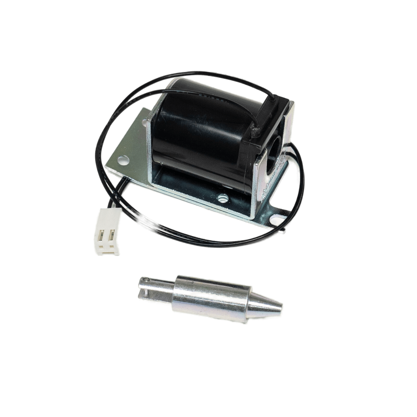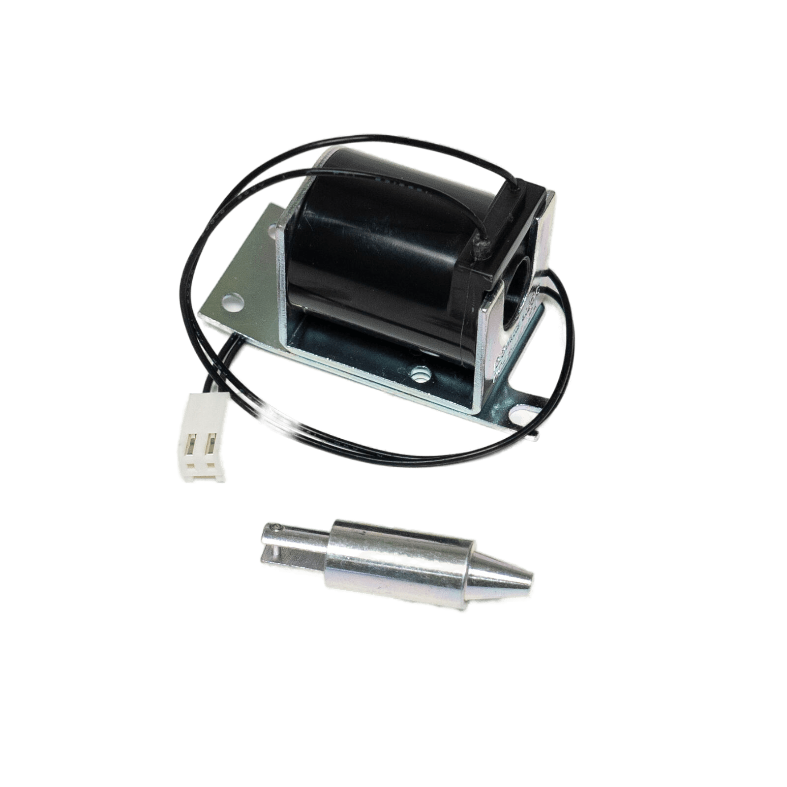 🔥 Specifications: Solenoid assembly, 115V, 1.15A, 60Hz, 13.5W, black/white/gray plastic and metal, solenoid and bracket dimensions ~1-5/8"L x 1-3/8"W x 2-15/16"H, harness and plug ~12-3/4"L, actuator ~2"L x 1/2" diameter, includes two mounting screws.